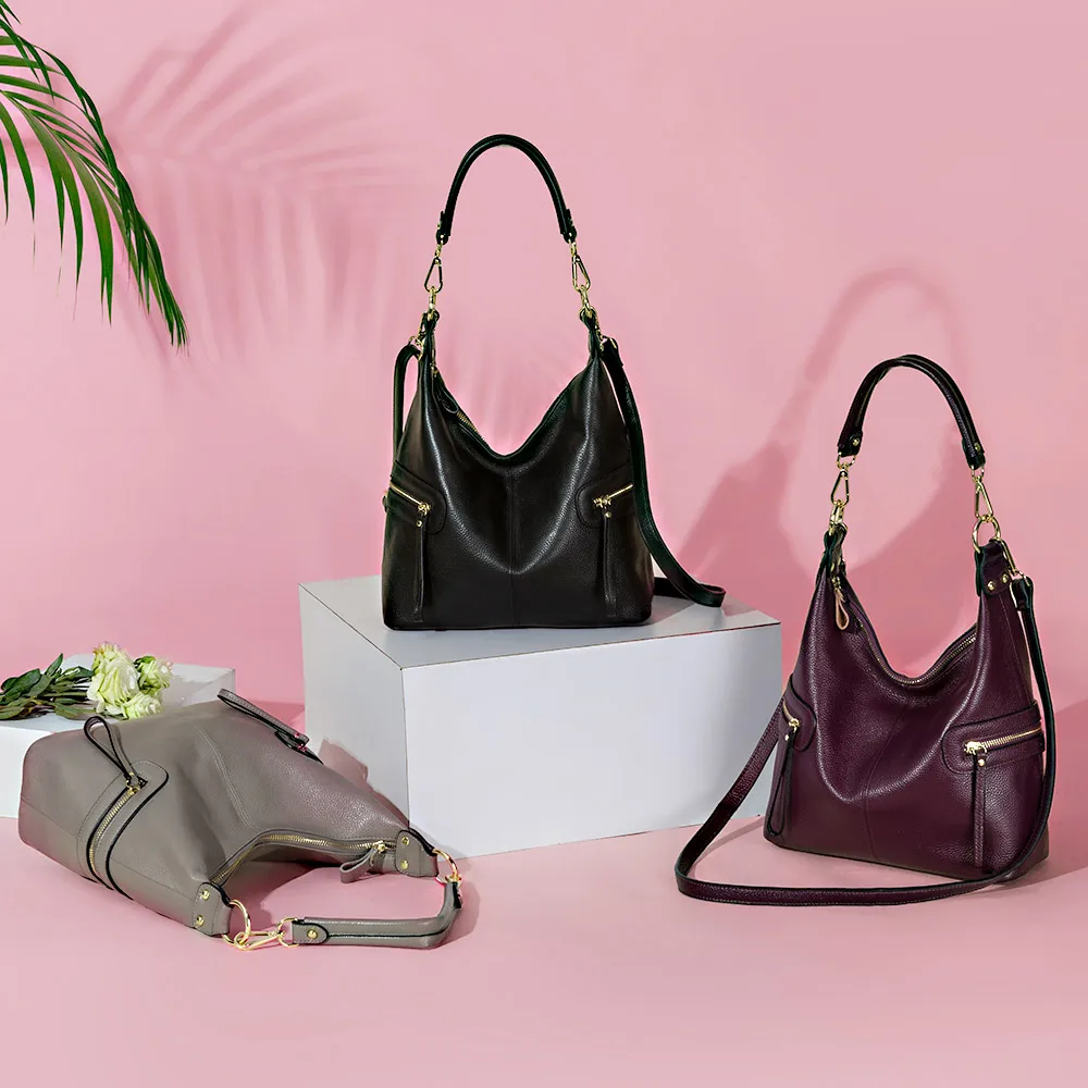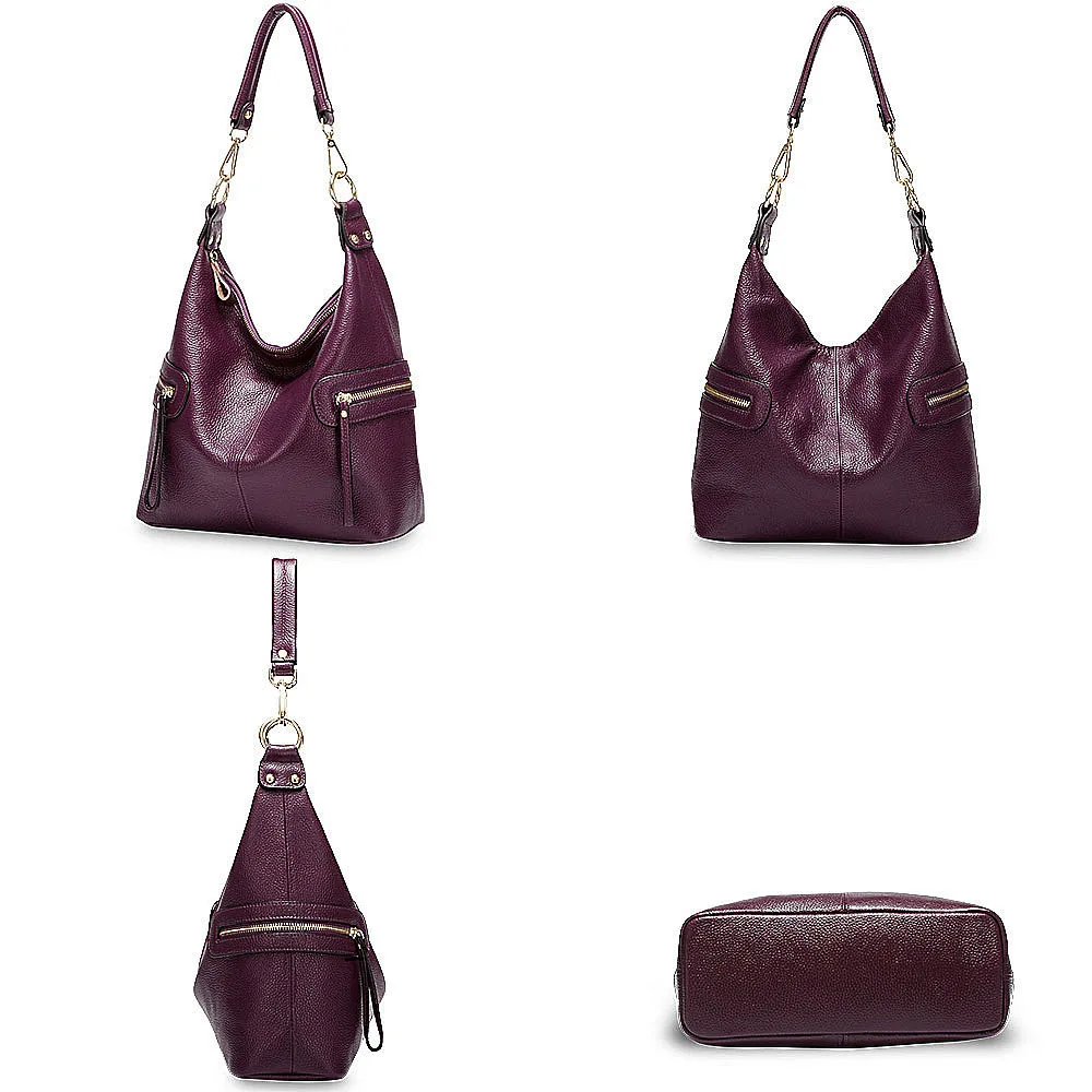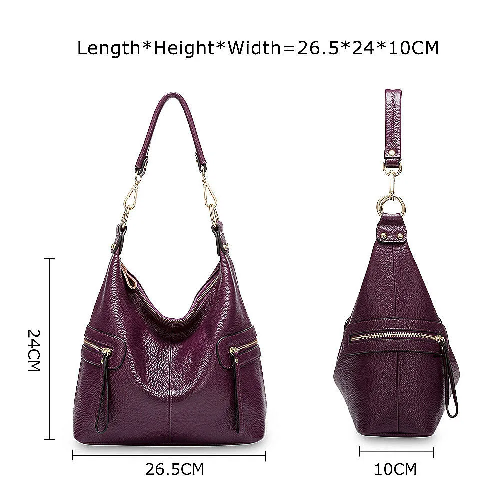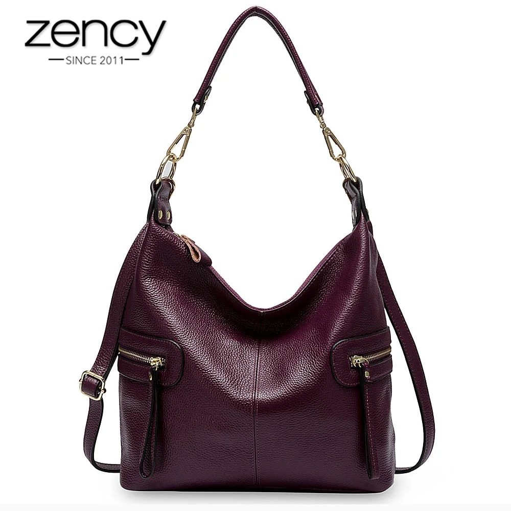Special Offer Zency Charm fioletowy 100% prawdziwej skóry mody kobiet torba na ramię obie strony na zamek błyskawiczny z kieszeniami pani torba na ramię czarna torebka Discount 52% Today!
