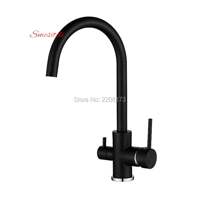 Special Offer 3 drożne zlewozmywaki New Arrival luksusowe matowe czarne wykończenie osmoza odwrócona 3 w 1 bateria kuchenna trójdrożny filtr do czyszczenia wodą Discount 36% Today!