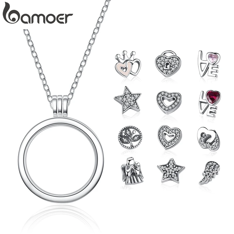 Special Offer BAMOER oryginalne 925 srebro średnie drobne wspomnienia pływające naszyjniki medalion i wisiorki srebro biżuteria PSF001 Discount 35% Today!