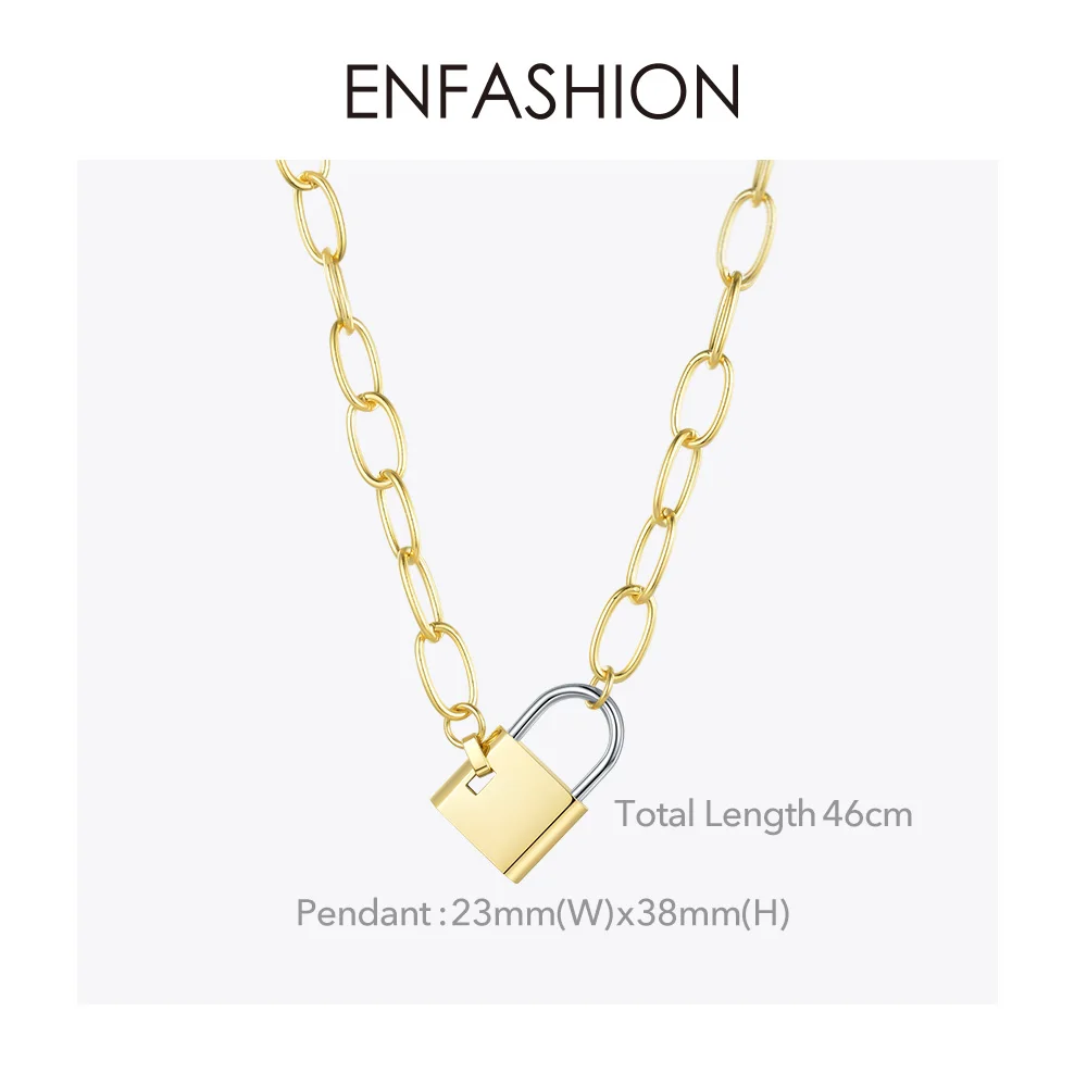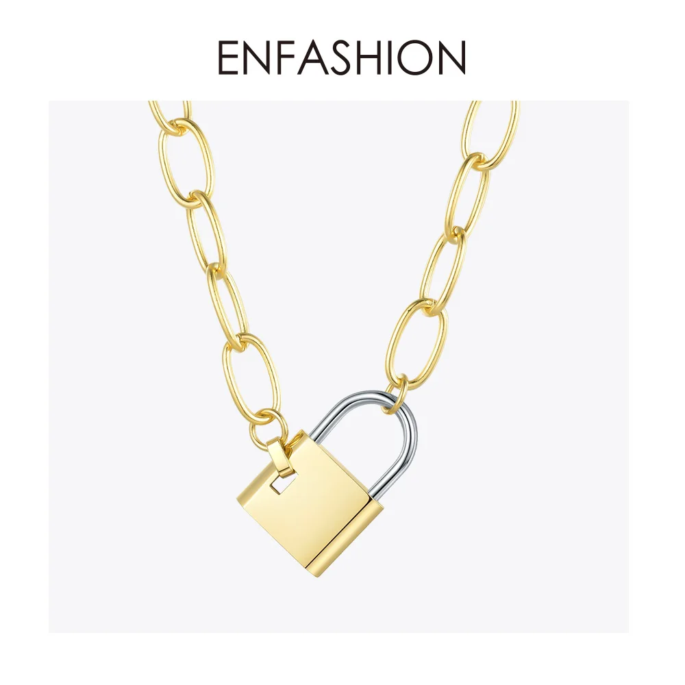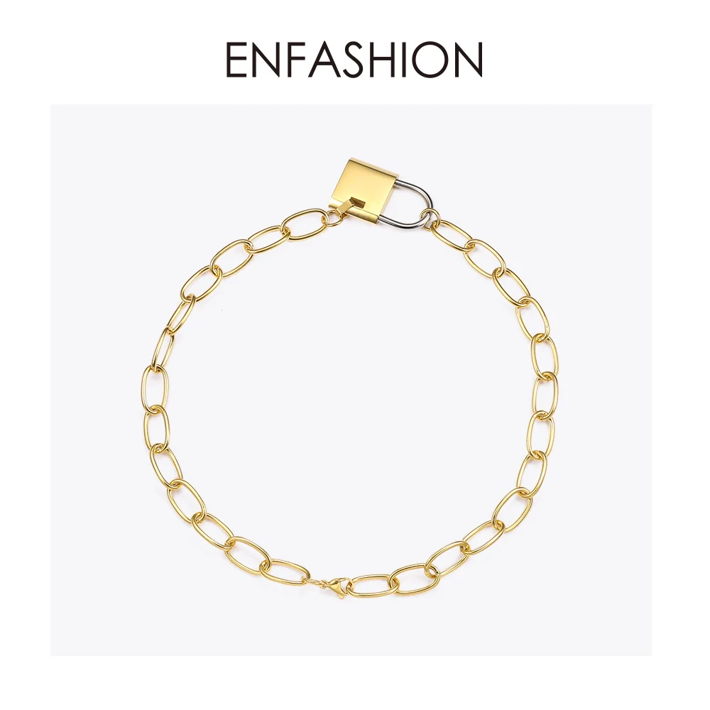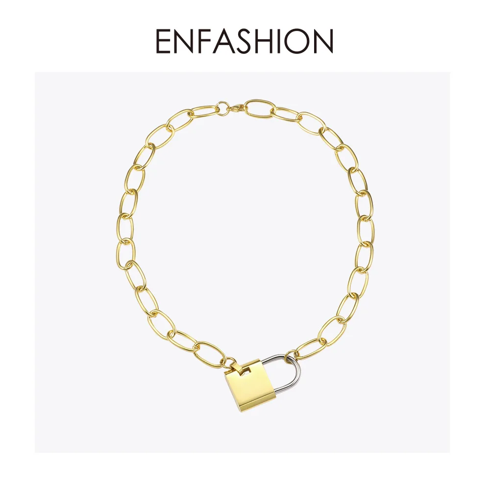Special Offer ENFASHION Big Lock Link choker łańcuszek naszyjnik kobiety złoty kolor stal nierdzewna Femme wisiorek naszyjniki biżuteria P193040 Discount 15% Today!