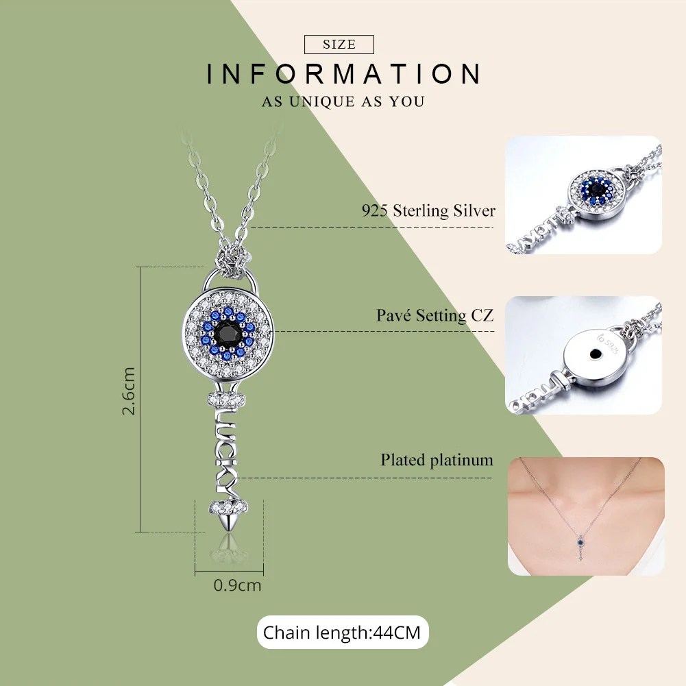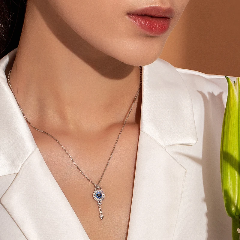 Product Name: BAMOER autentyczne 925 Sterling srebrne dla zakochanych klucz wisiorek naszyjniki dla kobiet kobieta niebieski kryształ naszyjnik biżuteria BSN013