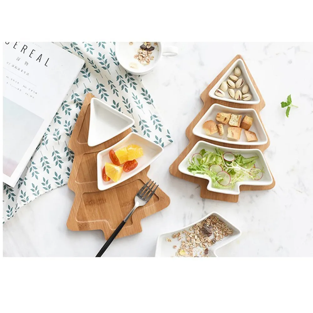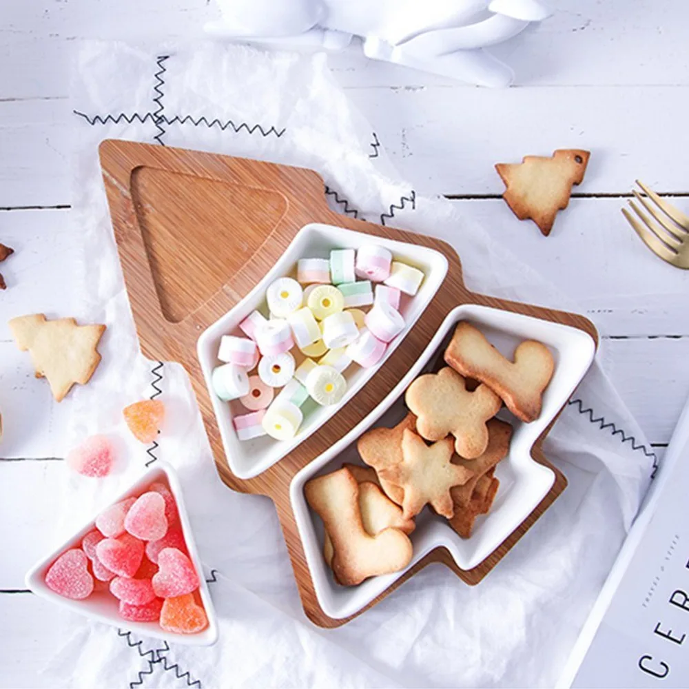 Special Offer Kreatywne w kształcie choinki naczynia ceramiczne płytkie talerze piękne naczynia kreatywne świąteczne zaopatrzenie firm z tablica bambusowa Discount 40% Today!