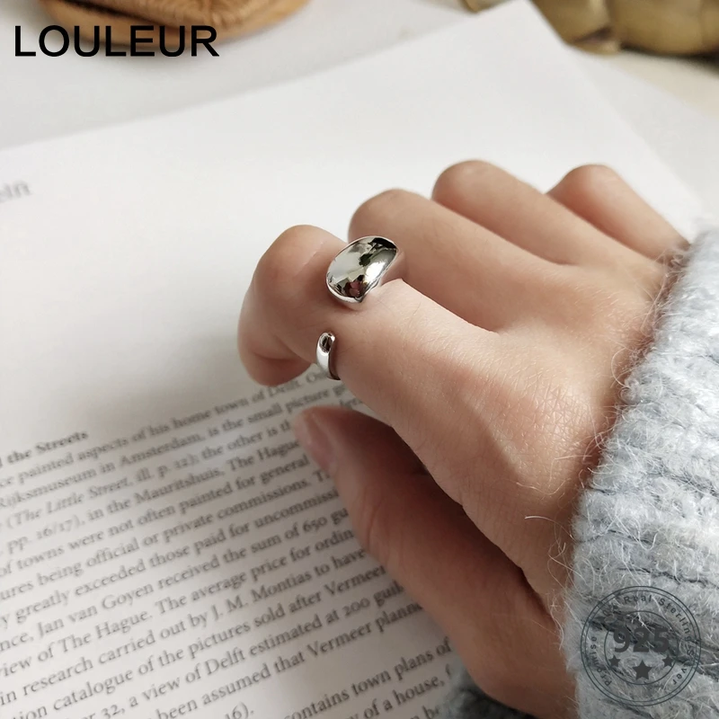 Product Name: LouLeur 925 sterling silver big water drop błyszczące pierścionki srebrne eleganckie osobowości otwarte pierścienie dla kobiet biżuterii dla uroku